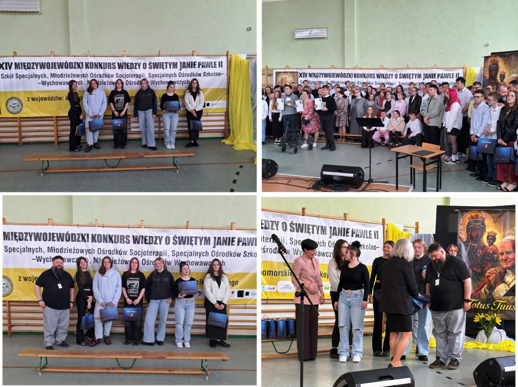 15 kwietnia w ZSS im. Janusza Korczaka w Kcyni odbył się XIV Międzywojewódzki Konkurs poświęcony osobie i nauczaniu św. Jana Pawła II. W konkursie wzięłi udział przedstawiciele kilkunastu szkół z województwa Kujawsko- pomorskiego, Pomorskiego oraz Wielkopolskiego. Mocny zespół stanowiły wychowanki Młodzieżowego Ośrodka Wychowawczego im. Polskich Olimpijczyków w Kruszwicy. Zmagania wiedzowe były połączone ze wspomnieniem wielkiego pontyfikatu Jana Pawła II, modlitwą oraz słodkim poczęstunkiem gdzie nie mogło zabraknąć kremówek! Był to czas wielkiej radośc i spotkaniai dla wszystkich którym bliska była osoba Jana Pawła II.
