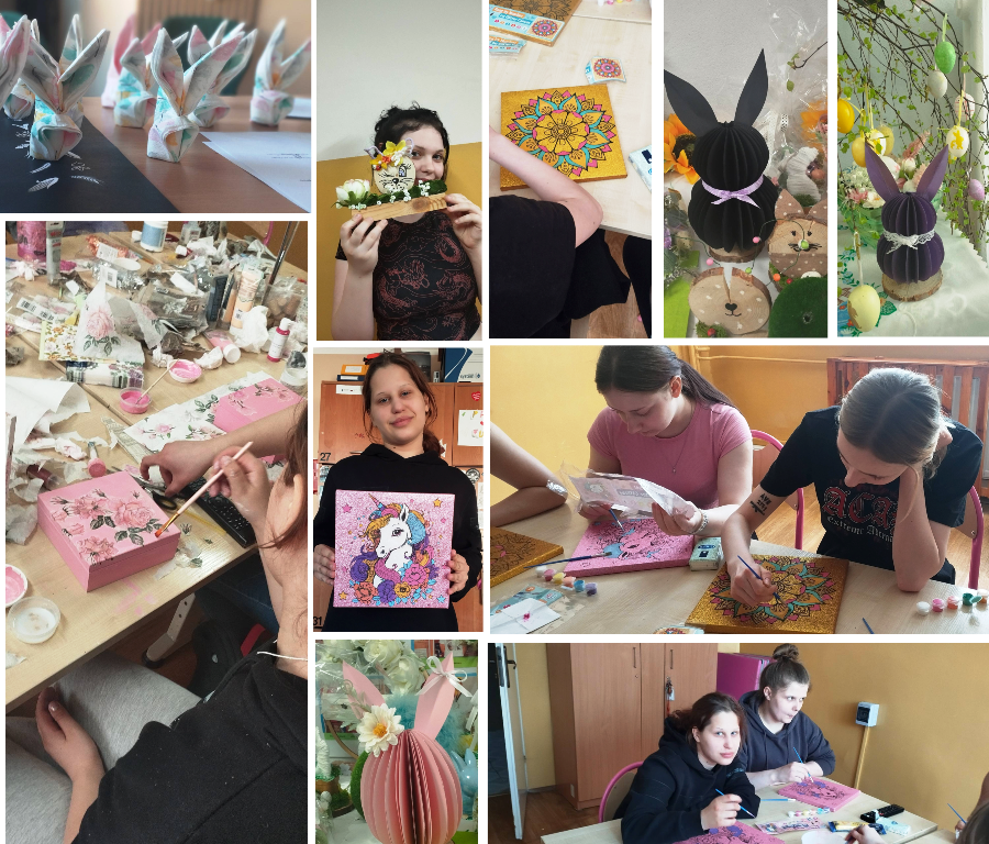 Po raz kolejny w ramach realizowanego w Młodzieżowym Ośrodku Wychowawczym w Kruszwicy projektu „Wykluczenie – nie ma MOWy! 2” odbył się cykl warsztatów rękodzielniczych. Podczas pierwszych zajęć wychowanki tworzyły świąteczne ozdoby z papieru – lekkie, dekoracyjne formy, które pokazały, jak z prostych materiałów można stworzyć coś wyjątkowego. Na kolejnych warsztatach uczestniczki malowały obrazy po numerach, ucząc się precyzji, cierpliwości oraz koncentracji.Podczas następnych zajęć dziewczyny poznały technikę decoupage, którą wykorzystały do ozdabiania i tworzenia własnych szkatułek, nadając im indywidualny charakter oraz rozwijając zdolności manualne i kreatywność.Zajęcia odbywały się w atmosferze współpracy i wzajemnego wsparcia, co sprzyjało integracji grupy i budowaniu pozytywnych relacji.